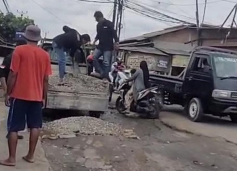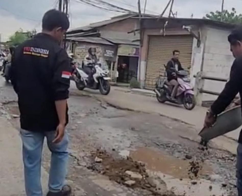 Dengan penuh semangat kebersamaan, ketua korwil FWJI Kab Bekasi turun langsung ke lokasi bersama jajarannya, mereka bergotong royong melakukan penambalan jalan menggunakan material batu, pasir dan semen, serta merapikan permukaan jalan agar dapat dilalui kendaraan dengan lebih aman.