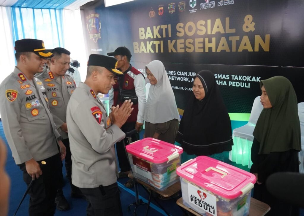 SwaraBogor | Cianjur – Kapolda Jawa Barat Rudi Setiawan melaksanakan kunjungan kerja ke wilayah Kecamatan Takokak, Kabupaten Cianjur dalam rangka kegiatan bakti kesehatan dan bakti sosial Polda Jawa Barat bersama Artha Graha Group, Rabu (1/4/2026).