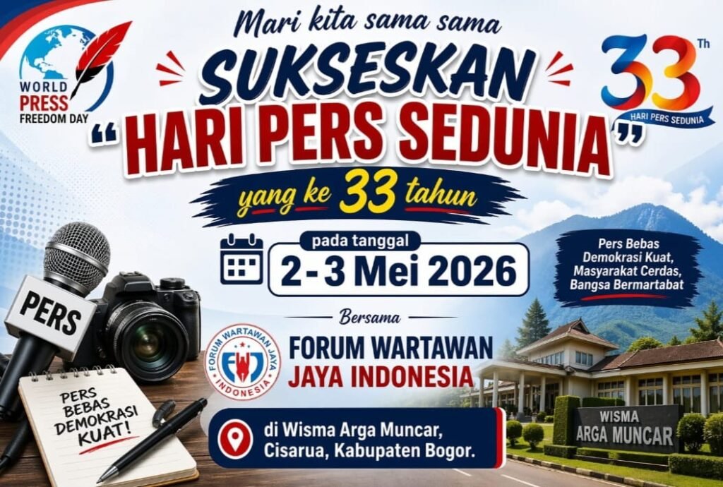 “Untuk itu kami FWJ Indonesia yang didukung Word Peace Organization (WPO) akan memperingati HPS tanggal 2 – 3 Mei 2026 di Wisma Arga Muncar Puncak Bogor Jawa Barat. Kenapa harus tanggal 3 Mei? Tentunya tanggal itu memiliki arti penting dalam sejarah kebebasan Pers. Perlu diingat deklarasi Windhoek sebagai pernyataan prinsip-prinsip pers bebas yang disusun oleh jurnalis Afrika di Namibia pada tahun 1991. “Jelas Opan.