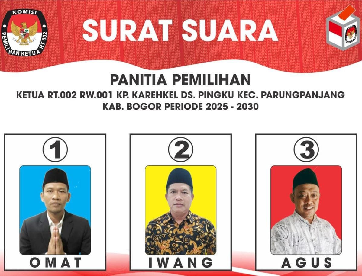 SwaraBogor.com | Parung Panjang Bogor – Warga Kampung Karehkel, Desa Pingku, Kecamatan Parung Panjang, Kabupaten Bogor, sukses menyelenggarakan pesta demokrasi pemilihan Ketua Rukun Tetangga (RT) 002/001 periode 2025-2027 melanjutkan ketua RT sebelumnya
