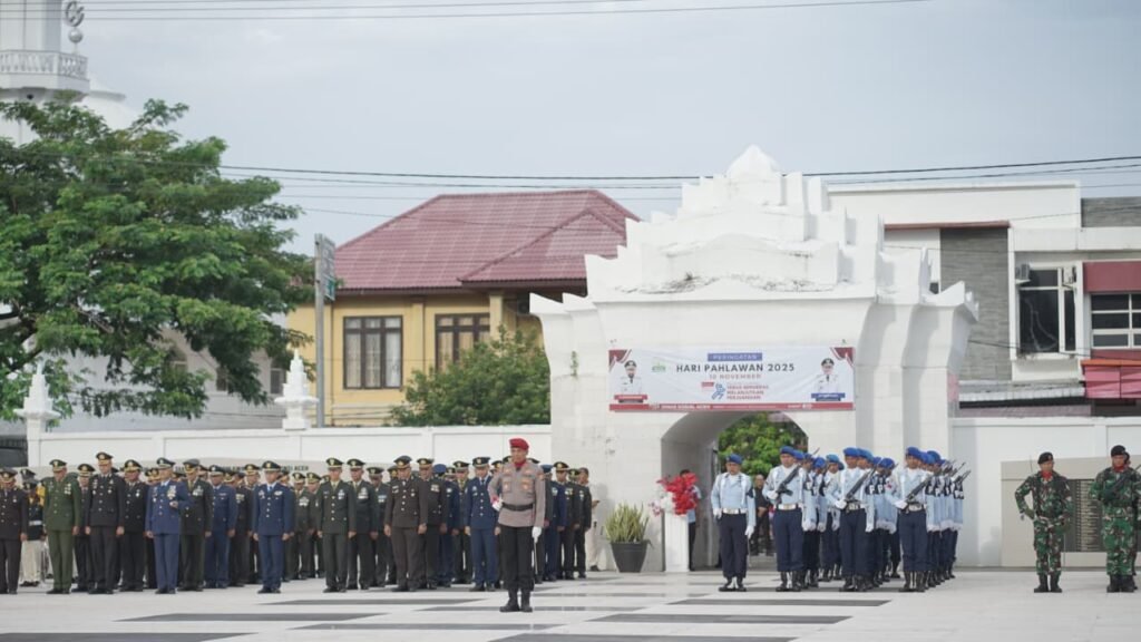 Swarabogor.com | Banda Aceh — Wakapolda Aceh Brigjen Pol. Ari Wahyu Widodo, mengikuti upacara Ziarah Nasional dalam rangka memperingati Hari Pahlawan ke-80 tahun 2025 yang berlangsung di Taman Makam Pahlawan (TMP) Kota Banda Aceh, Senin, 10 November 2025.